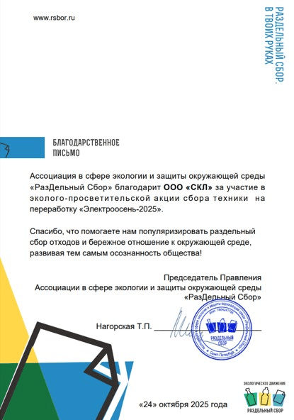 Наша компания недавно приняла участие в акции «Электроосень» от экологического движения «РазДельный Сбор», направленной на сбор и переработку старой техники. Это мероприятие стало важной возможностью не только внести вклад в защиту окружающей среды, но и организовать ответственное избавление от устаревших электронных устройств.